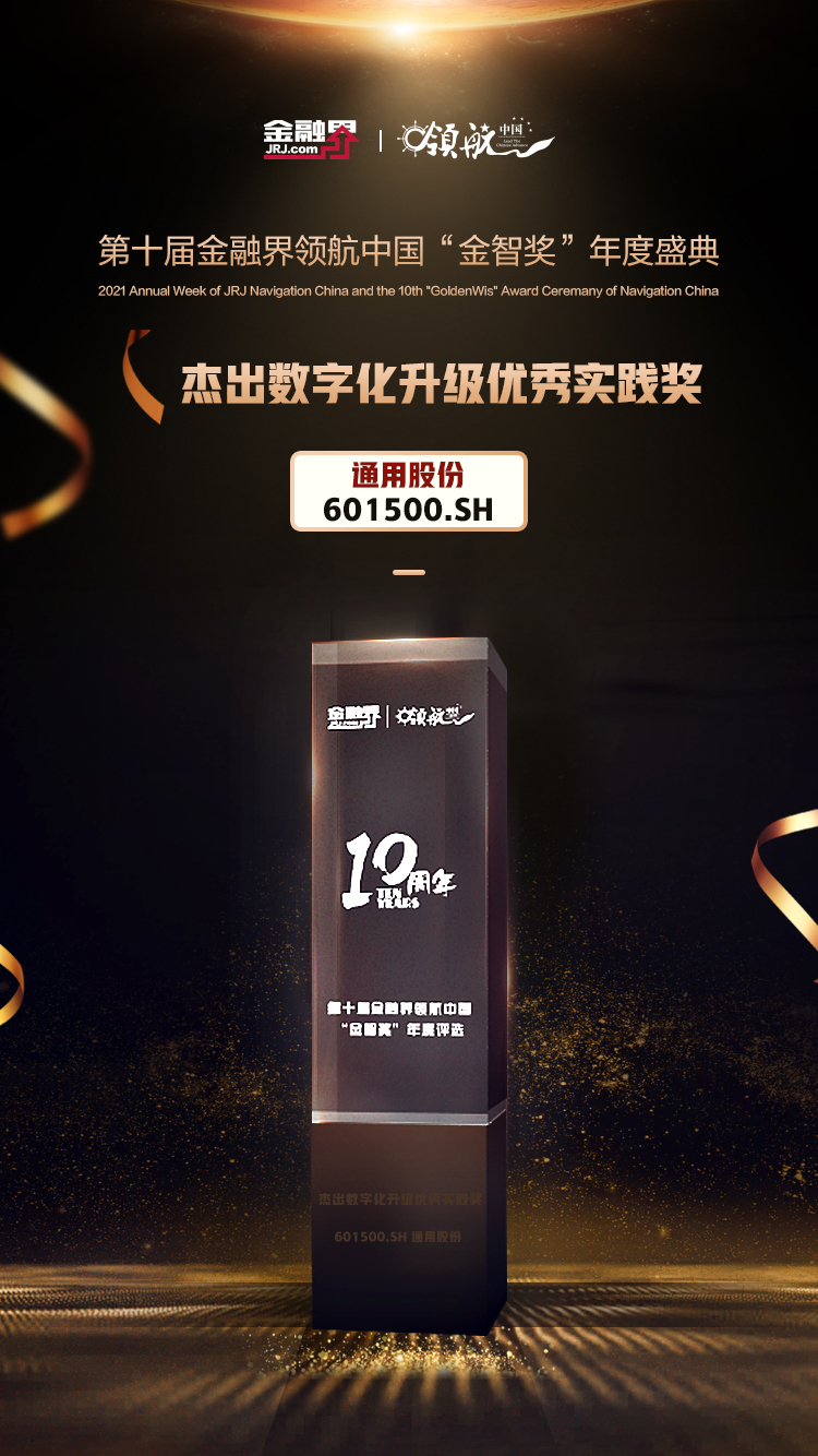 通用股份榮獲2021領航中國杰出數(shù)字化升級優(yōu)秀實踐獎 12月24日,在由金融界舉辦的2021第十屆領航中國金智獎年度盛典頒獎典禮上,通用股