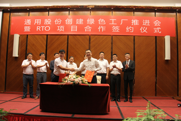 8月29日,通用股份創(chuàng)建綠色工廠推進(jìn)會(huì)暨RTO項(xiàng)目合作簽約儀式舉行,通用股份與韓國大洋環(huán)境株式會(huì)社正式簽署項(xiàng)目合作協(xié)議,雙方就RTO