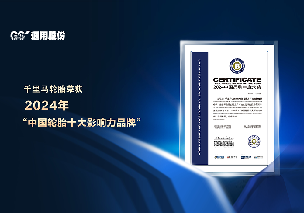 12月18日,通用股份旗下千里馬輪胎連續(xù)六年榮獲中國輪胎十大影響力品牌稱號。這項殊榮來自2024年第二十一屆中國品牌年度大獎評選,該獎項由