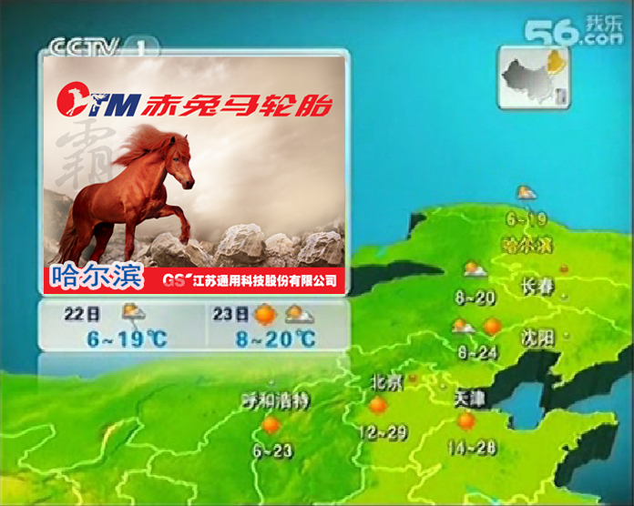 2011年漸漸遠去,在廣電總局先后下達“限娛令”及“限廣令”的大背景下,各大企業紛紛調整品牌戰略步伐,將目光逐漸轉向其他媒介。在此種情況下,央視資源搶占就顯得尤為珍貴,2012年開年伊始江蘇通用科技股份有限公司與中央電視臺攜手,斥資在CCTV-1新聞聯播《天氣預報》哈爾濱版塊投放千里馬、赤兔馬輪胎廣告,歷時四個月,為提升品牌高度注入了新的砝碼。