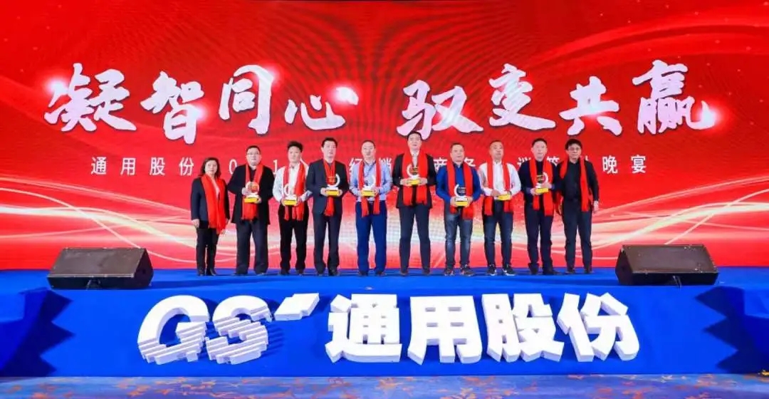 唯創新者強,唯進化者勝。本次會議隆重表彰了為通用股份發展貢獻力量的經銷商合作伙伴,晚宴現場頒發了2020年度潛力經銷商獎、先進經銷商獎、優秀經銷商獎、杰出經銷商獎等獎項。他們以高昂的斗志馳騁跨越,在商海的競爭中勇立潮頭,乘風破浪,他們是通用股份親密無間的合作伙伴,一座座獎杯記錄了他們的榮譽和付出,會議現場氣氛不斷推向高潮!