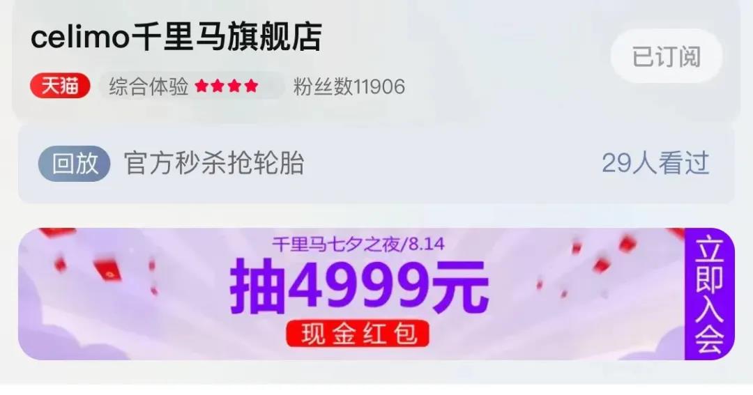紅包產生路徑:“celimo千里馬”天貓官方旗艦店將抽取一名幸運消費者,另外還將有68個4999元紅包名額將通過紅豆七夕晚會(2021年8月14日20點至22點)在直播平臺現場瓜分。