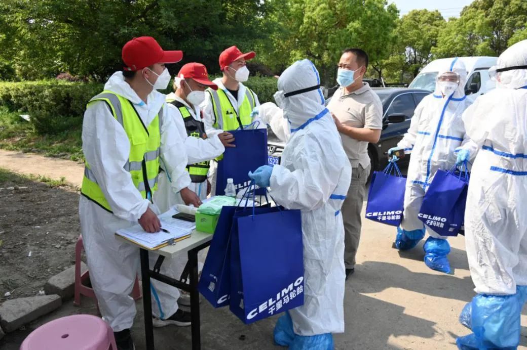 通用股份的志愿者們向一線的工作人員,貨車司機,愛心車隊司機送去了礦泉水、方便面、巧克力、消毒巾等物資。無錫羊尖卡口作為重要的交通樞紐,往來的車輛十分密集,卡口周圍多個部門參與執勤,參與防疫工作。因為他們日夜奮戰,辛勤執勤,卡口的工作井然有序的進行中。通用股份的志愿者們將抗疫禮包送到工作人員的手中,在炎熱天氣中為工作人員帶來絲絲涼意。