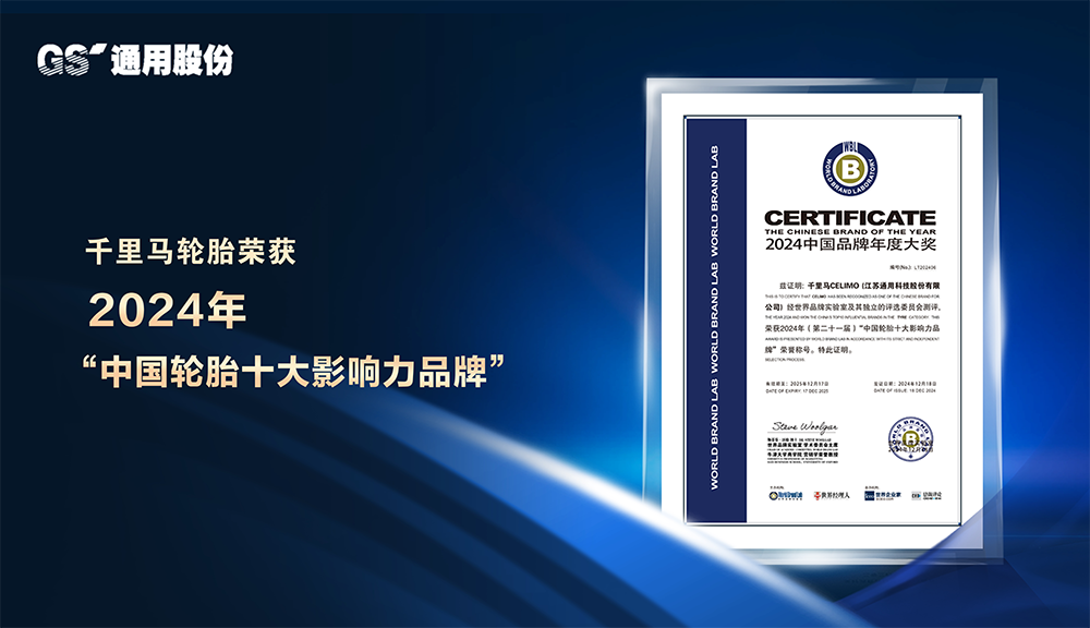 12月18日,通用股份旗下千里馬輪胎連續(xù)六年榮獲“中國輪胎十大影響力品牌”稱號。這項殊榮來自2024年第二十一屆“中國品牌年度大獎”評選,該獎項由世界品牌實驗室頒發(fā),旨在表彰在中國市場具有突出影響力的品牌。