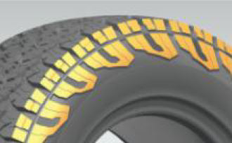 通過計算機仿真優化,優化各花絞塊的強度各花紋塊堅實有力,可以應對各種嚴苛環境保證輪胎的牽引能力;